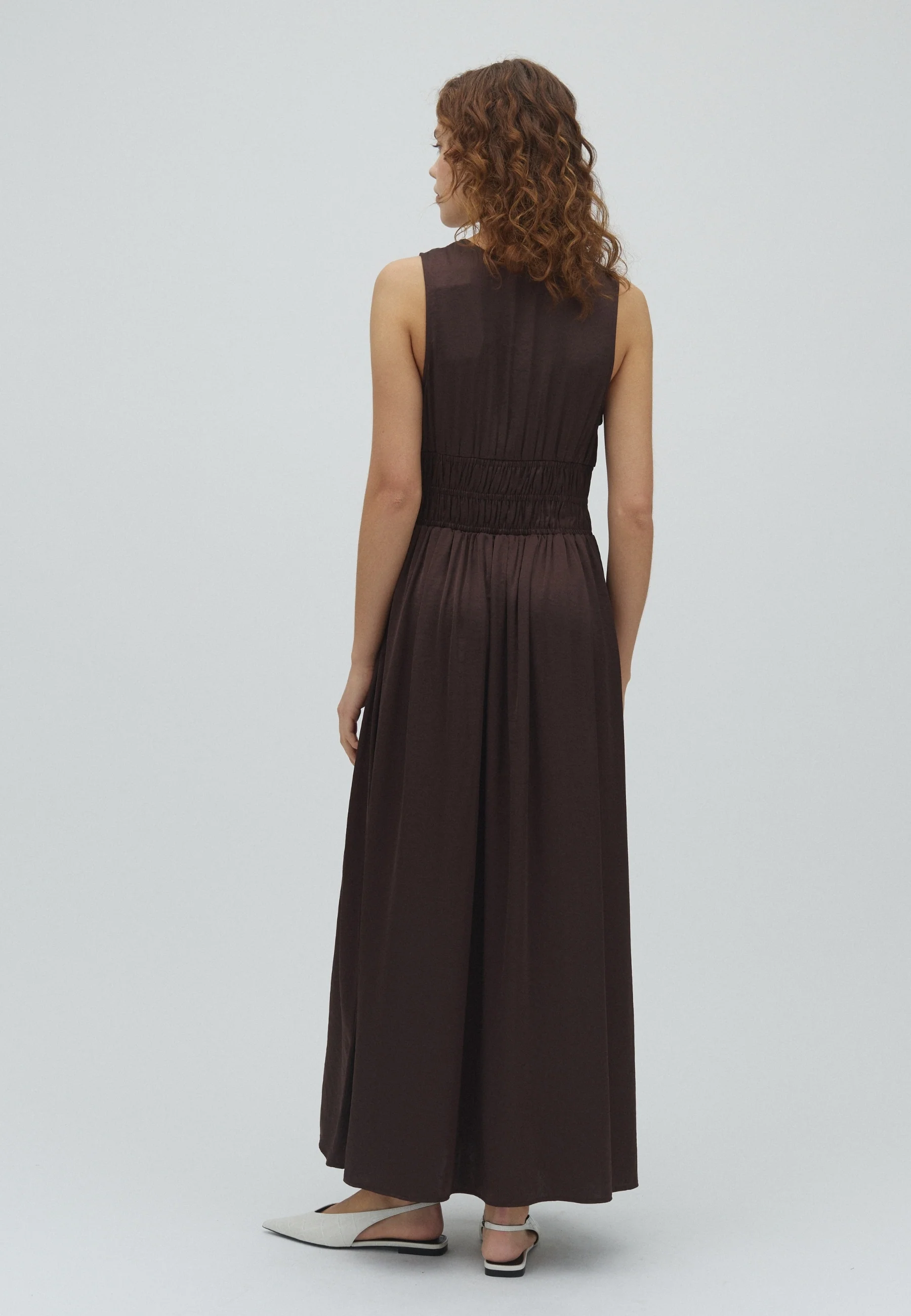Reversible satin maxi dress with lace-up detail.